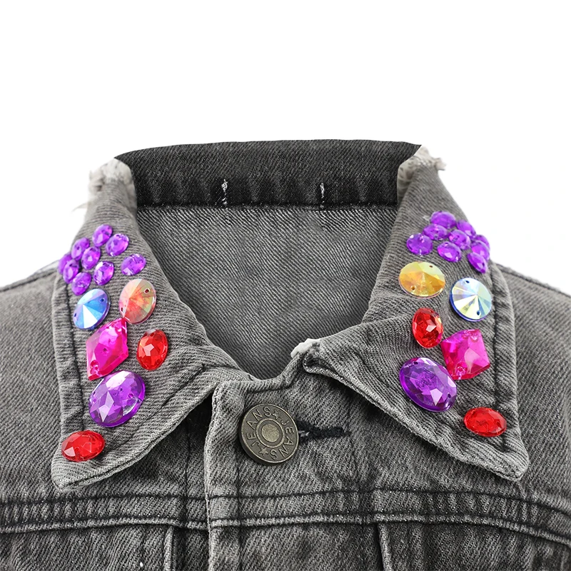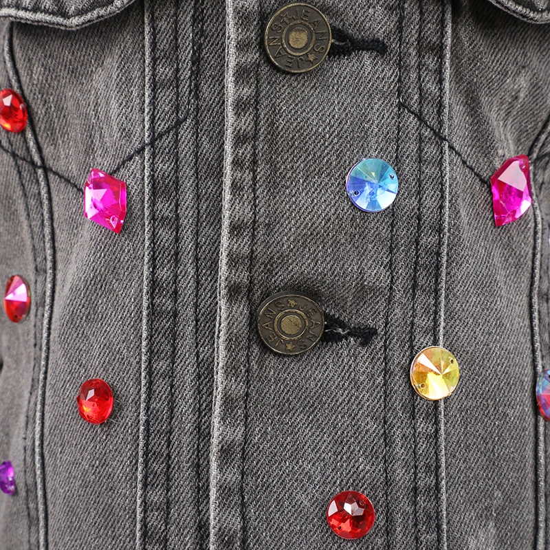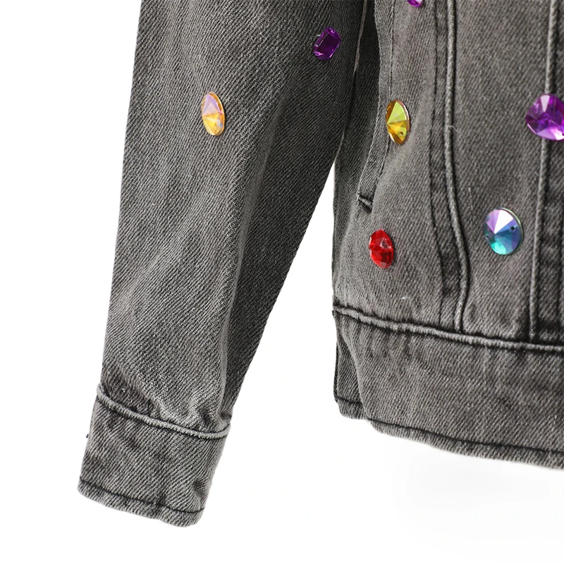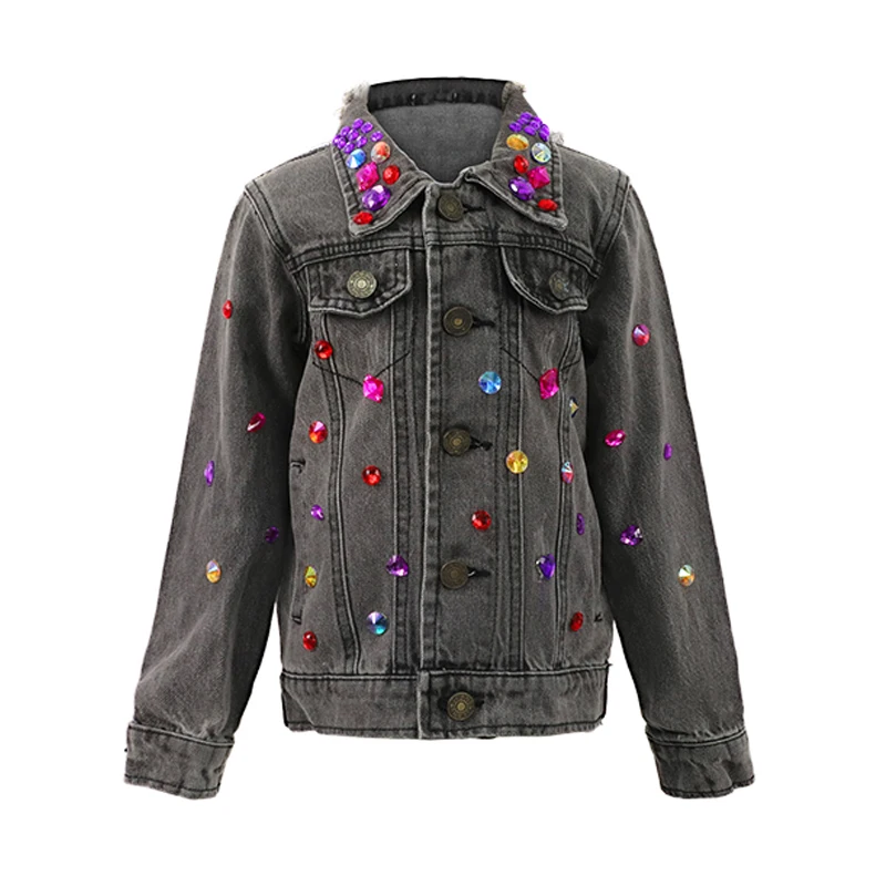 OEM Custom Kids Street Wear Girls Jacket Beaded Diamonds Girls Jeans Jacket